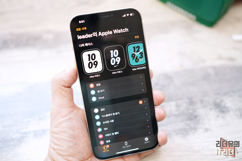 애플워치7 나이키 에디션 워치페이스 색상이 기본으로 퓨어 플레티넘으로 설정되어 있습니다. 밴드 색상과 처음부터 매칭이 되어 있는 섬세함을 볼 수 있습니다.