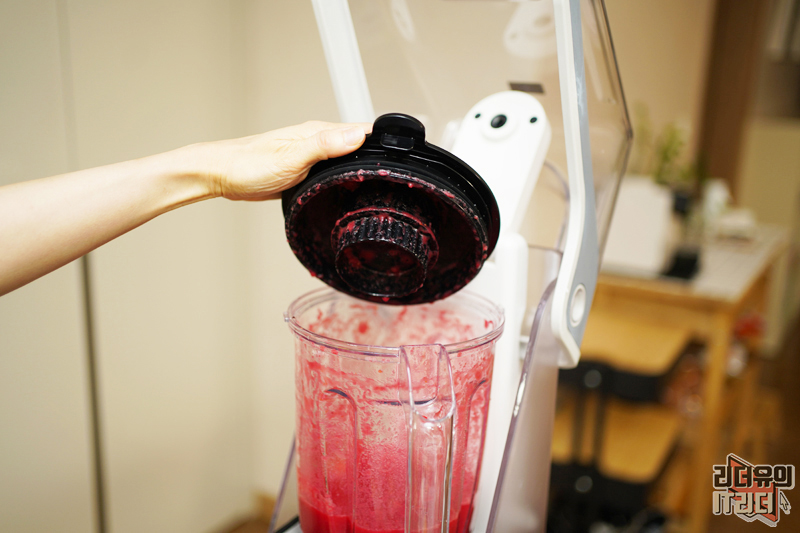 곱게 갈아진 내용물! 초고속 블렌더라 짧은 시간에 정말 곱게 만들어진 음료를 볼 수 있습니다.