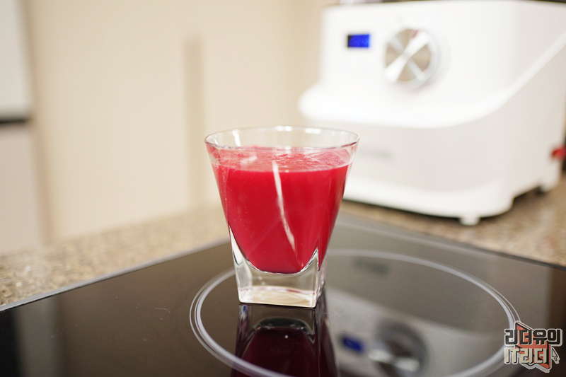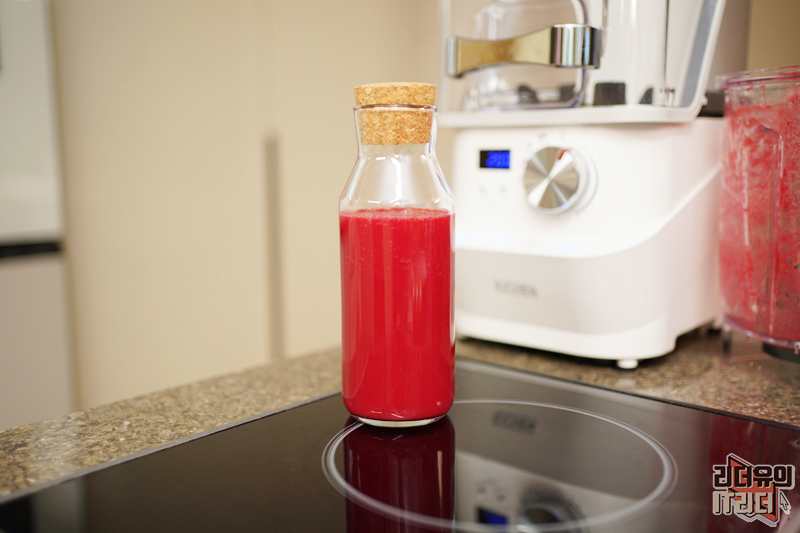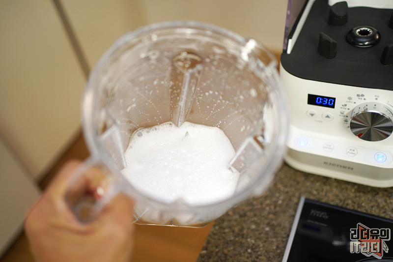 곱게 갈아진 내용물! 초고속 블렌더라 짧은 시간에 정말 곱게 만들어진 음료를 볼 수 있습니다.