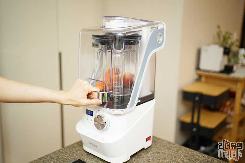 그리고 보호의 역할도 합니다. 블렌더의 경우 초고속 회전으로 열이 발생하니 폭파되는 사고 소식도 듣고 하는데요. 소음 덮개가 단단하고 두꺼워 그런 문제를 방지해 주고 있고 내장형 안전 잠금 시스템이 되어 있어 안심하고 사용할 수 있습니다.