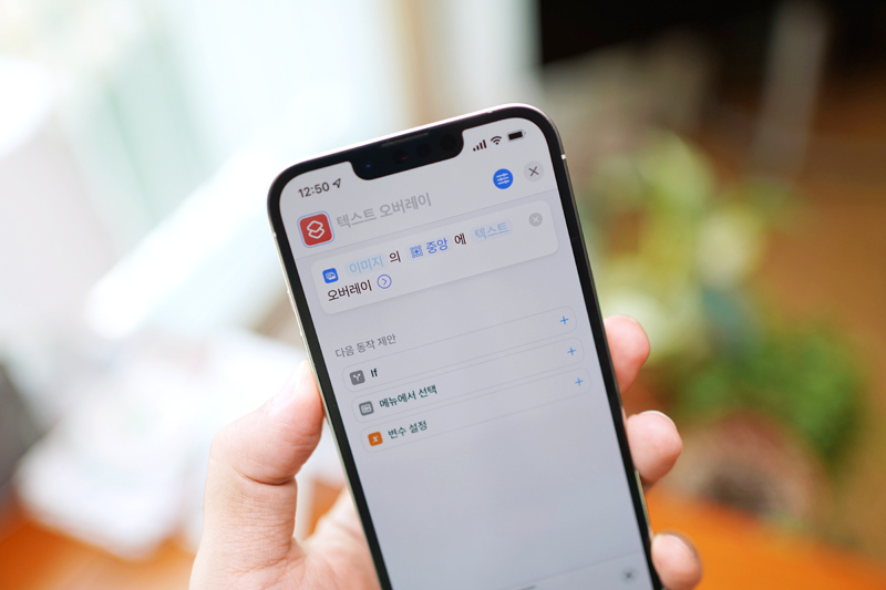이렇게 다양한 옵션을 주어 이미지에 텍스트를 넣을 수 있습니다. 애플은 스마트폰이 왜 스마트폰인지 단축어 기능을 통해 계속 해서 실험을 하는 것 같습니다.