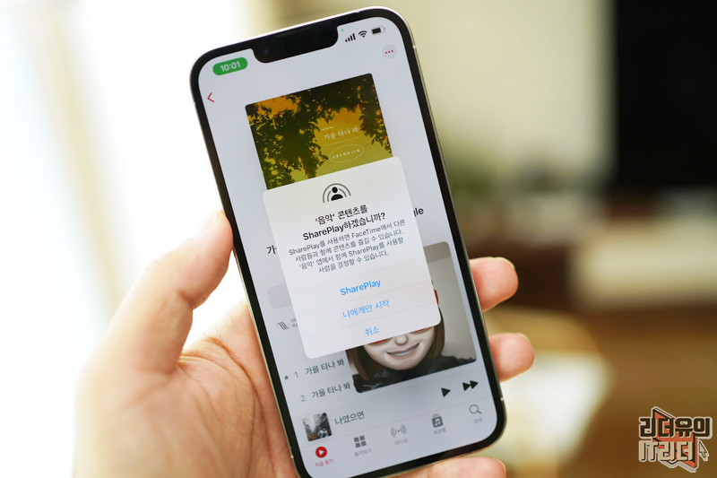 애플뮤직에서 음악을 선택하면 SharePlay(쉐어플레이)를 할지 묻습니다. 나만 들을지 상대와 같이 들을지 선택할 수 있는 것입니다.