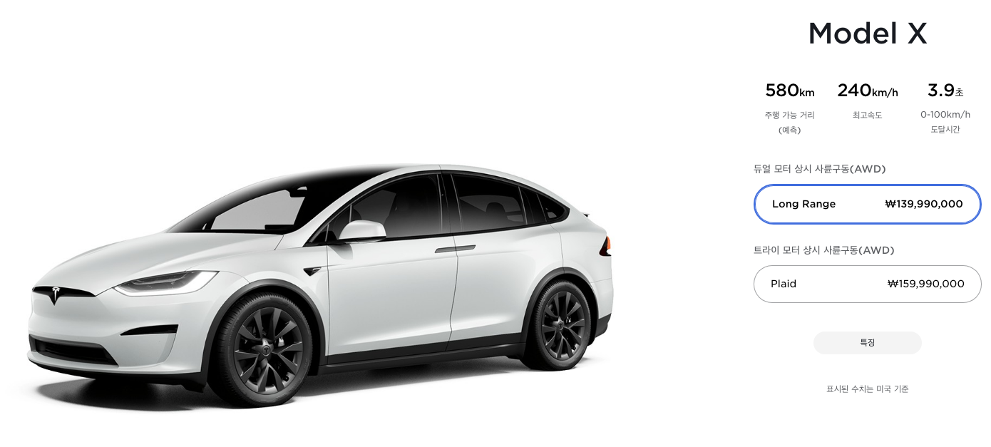 테슬라 모델X 플레이드 모델은 워낙 가격이 비싼 모델이라 가격을 인상하지 않았습니다.
