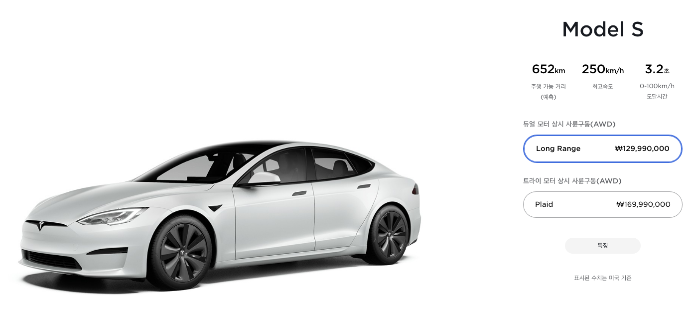 테슬라 모델S 플레이드 가격은 169,990,000원으로 올리지 않았습니다.
