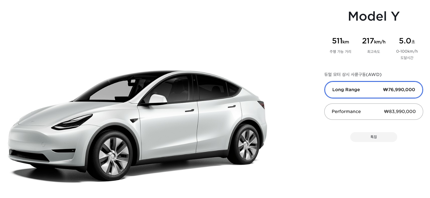 테슬라 모델Y 가격이 롱레인지 모델은 76,990,000원이 되었고 퍼포먼스 모델은 83,990,000원이 되었습니다.