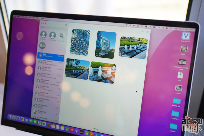 메시지에 사진을 여러장 보내면 맥OS 몬터레이 (macOS 12 Monterey)에서는 더 예쁘게 사진을 볼 수 있습니다. 3장까지는 이렇게 콜라주 형식으로 보이게 되고