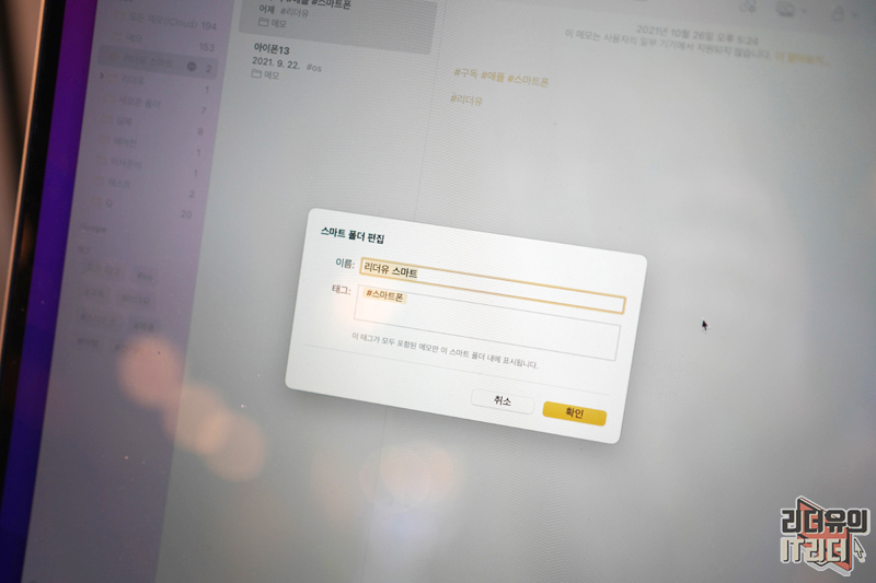 스마트 폴더는 메모를 자동으로 구분해서 넣어주는 폴더 입니다. 태그를 지정해 두면 관련 태그가 입력될 시 자동으로 해당 스마트 폴더로 들아가게 되어 구분하기에 좋습니다.