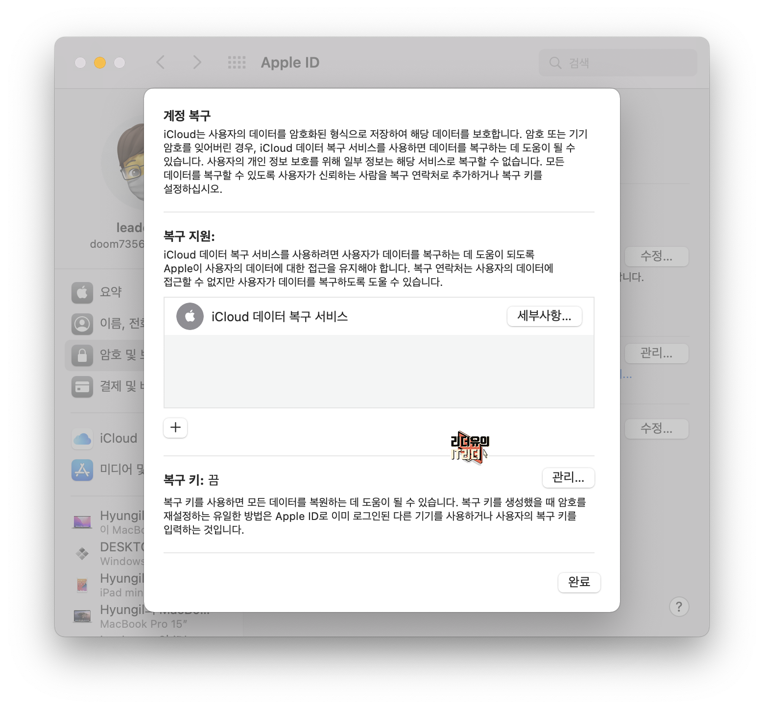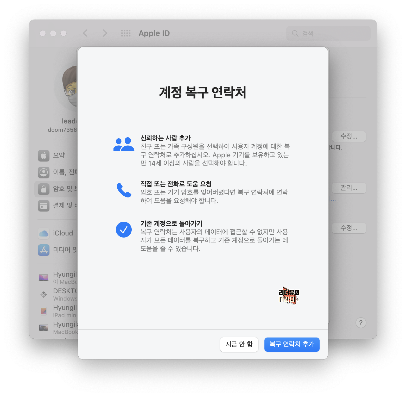 19. 맥OS 몬터레이 계정 복구 연락처 추가