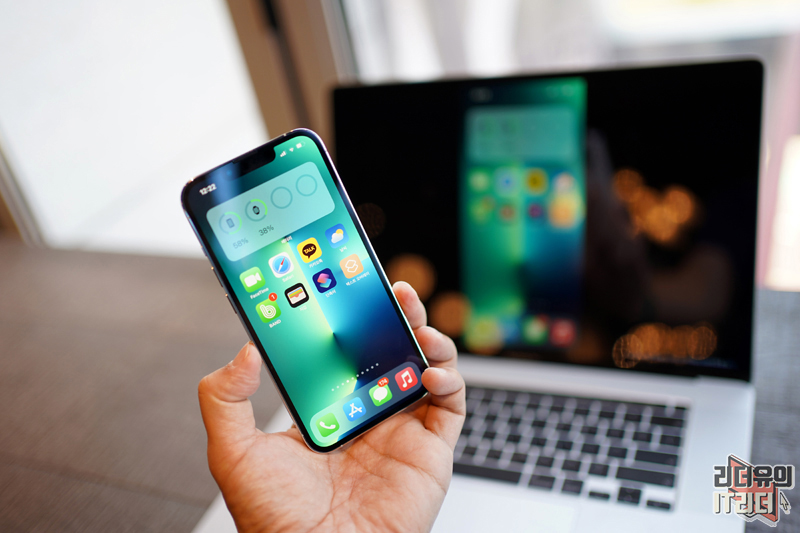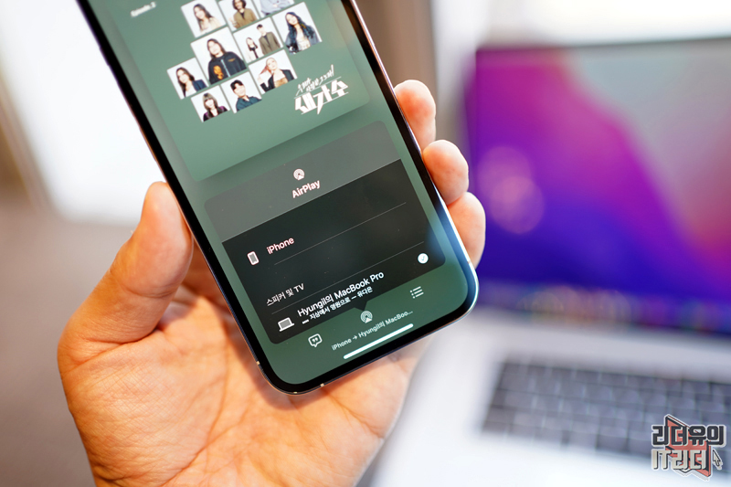 맥북프로 화면에 아이폰 화면이 미러링 되서 나오고 있습니다. 신기하고 재미있죠?