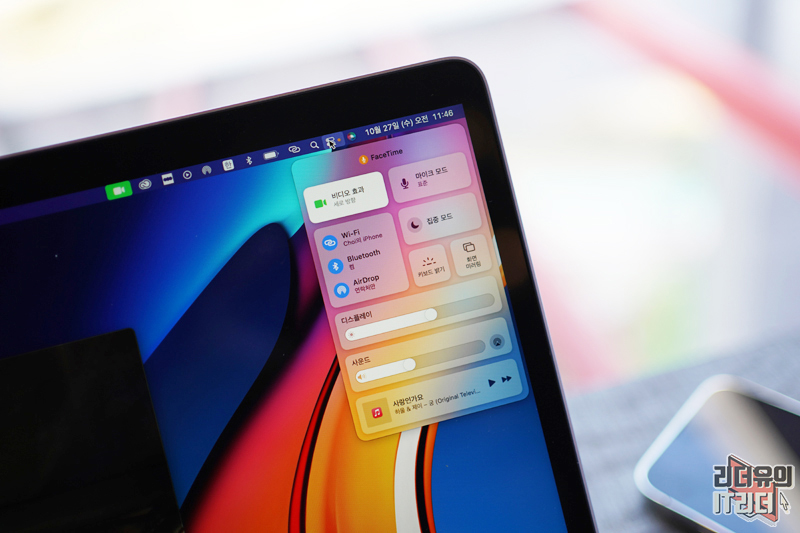 M1 맥북프로 제어센터 이미지 입니다. 비디오 효과가 있기 때문에 아이콘 배치 이미지가 다르다고 보시면 됩니다.
