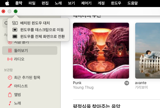 전체 화면시 메뉴 막대를 항상 보이게 하는 옵션이 생겼습니다. 메뉴의 접근성이 좋아졌습니다.