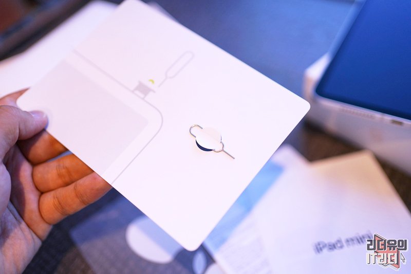 아이패드 미니 6세대 셀룰러 모델이라 유심 분리핀이 제공됩니다.