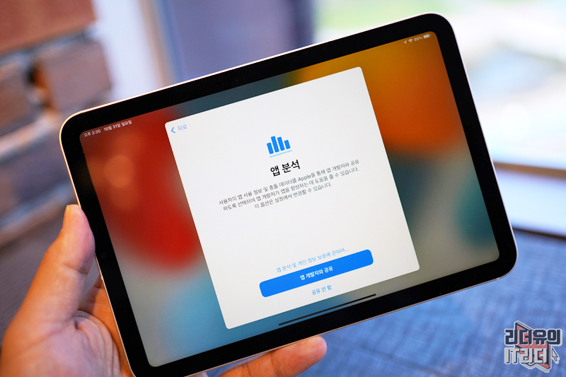 앱 분석을 앱 개발자와 공유할 것인지 나옵니다. 그럼 모든 아이패드 설정이 완료되었습니다.