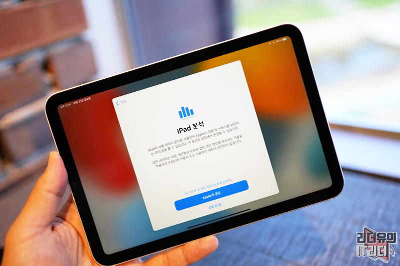 아이패드 분석을 애플과 공유할 것인지 선택하게 나옵니다.