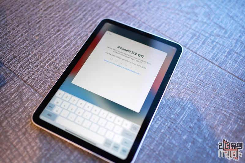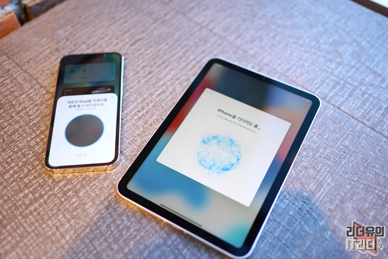 카메라를 원형의 이미지에 가져다 대면 아이패드 미니 6세대를 인식하게 됩니다. 이제 아이패드 미니 6세대로 가서 완료를 해주면 됩니다.