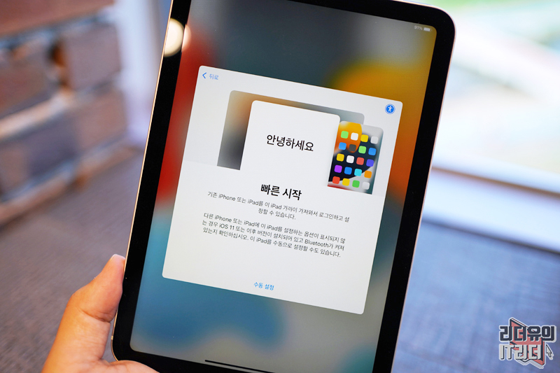 참고로 초기 배경화면은 iPadOS 15 버전이므로 새로운 배경화면은 설정에서 변경해 주시면 더욱 새로운 기분을 느낄 수 있습니다.