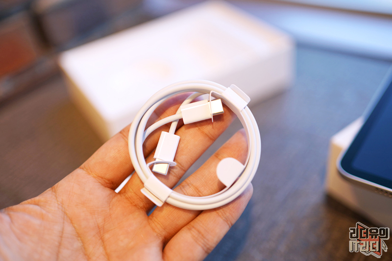 아이패드 미니 6세대는 USB-C 타입 단자로 변경되어서 케이블도 양방향 USB-C로 되어 있습니다. 참고로 아이패드 미니 6세대 USB-C는 3.1.1 세대로 최대 5Gbp/s 데이터 전송 속도를 가지고 있습니다.