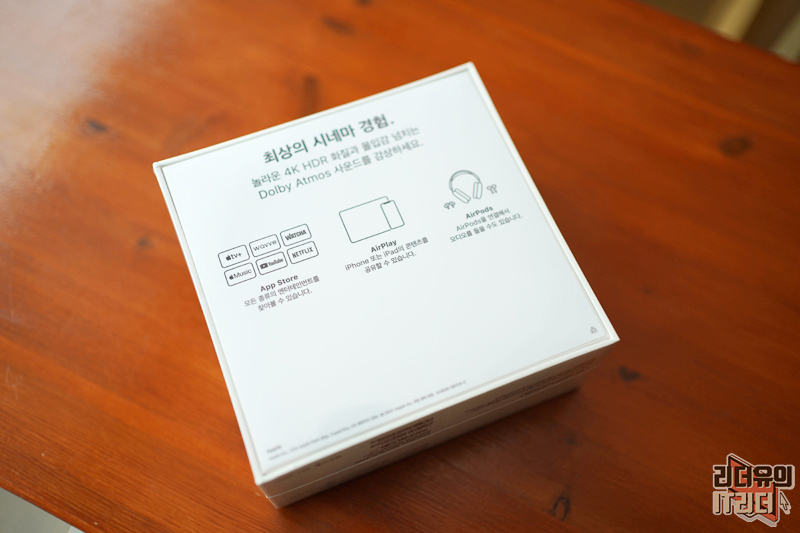 후면에는 애플 TV 4K로 무엇을 할 수 있는지 적혀 있습니다. 한국 정식 버전이라 한글로 쓰여 있습니다.