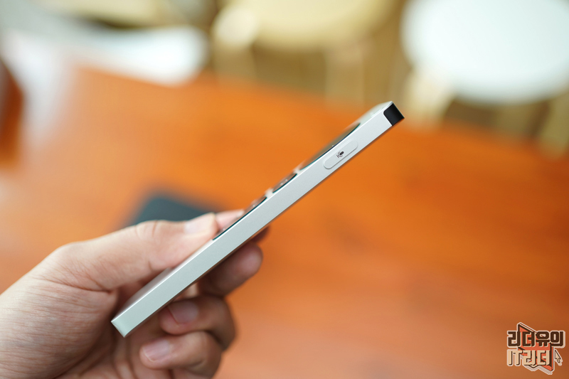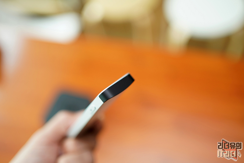 옆면은 모두 유광의 반짝 거리는 디자인으로 표현했습니다. 부드러운 라운딩이 들어간 모서리와 엣지있게 표현된 면 처리는 아이폰, 아이패드의 느낌과 유사합니다. 두께는 35mm로 두꺼운 편입니다. 무게는 425g 입니다.