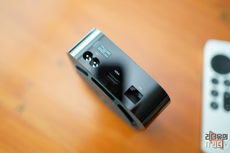 후면에는 전원 단자, HDMI 단자, 기가비트 이더넷 단자가 있습니다. 국내는 무선 환경이 잘 되어 있으니 이더넷 단자는 꼭 연결하지 않아도 됩니다. 참고로 HDM1 2.1을 지원하기 때문에 최고의 영상과 음성을 하나의 HDMI 케이블로 처리할 수 있습니다.