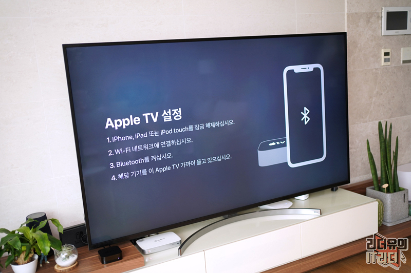 애플 TV 설정은 아이폰, 아이패드, 아이팟 터치를 통해 쉽게 할 수 있는데요. 보면 복잡하게 뭘 연결하라고 되어 있는데 기본 설정되어 있으니 그냥 잠금 화면만 풀면 됩니다.