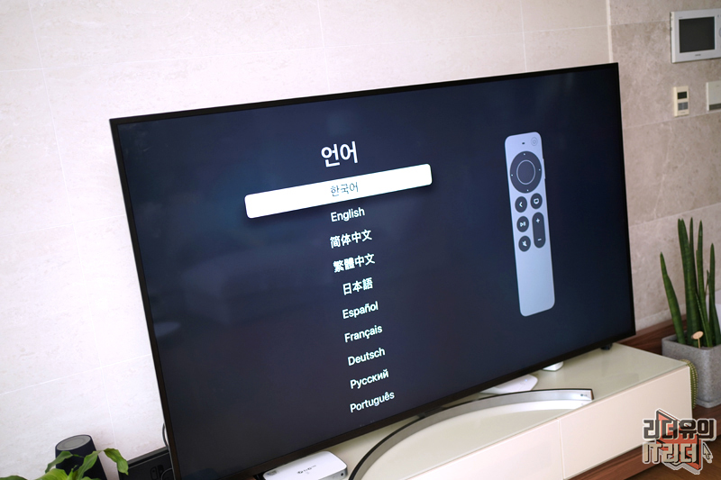 애플 TV 4K를 TV에 연결하고 전원을 켜면 언어를 설정하게 나옵니다.