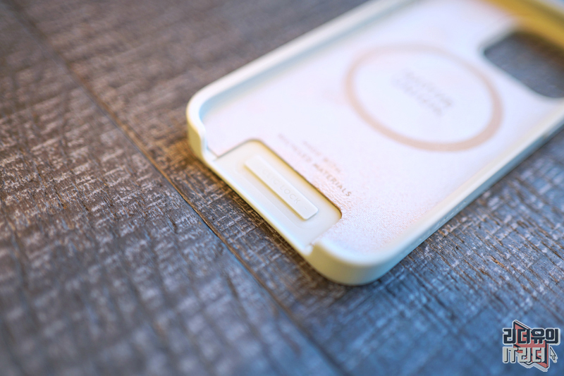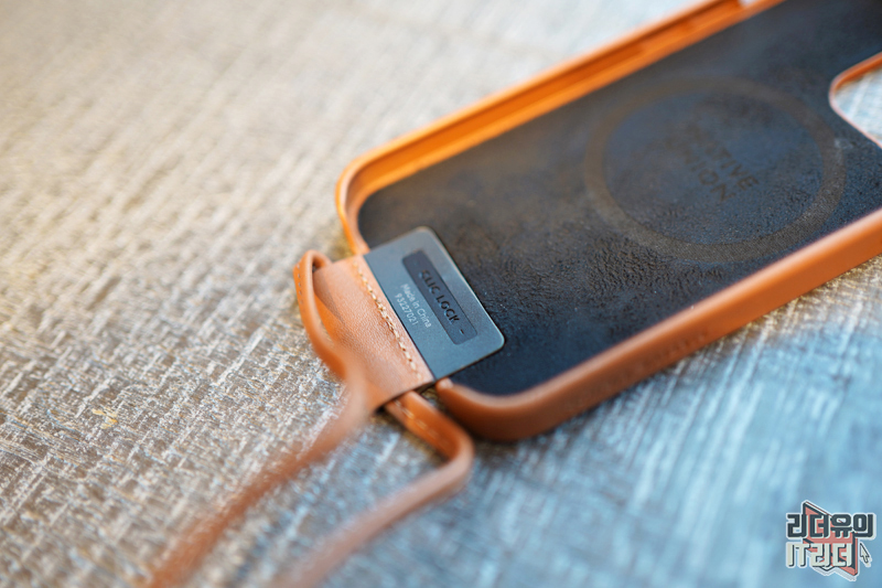안쪽에는 극세사 안감으로 되어 있어 아이폰13 프로를 안전하게 보호하고 있습니다. 그리고 아이폰13 프로 맥세이프 케이스라 원형의 라인이 보이고 그 안에 네이티브 유니온이라고 새겨져 있습니다.