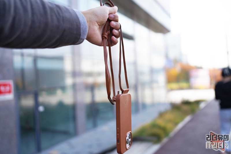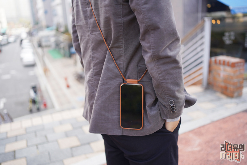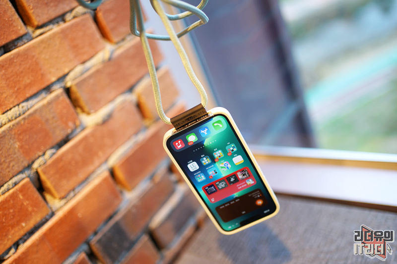 목에 건 모습입니다. 이렇게 아이폰13 프로를 착용해도 괜찮은 것 같습니다. 다만 무게가 좀 나갑니다. ^^