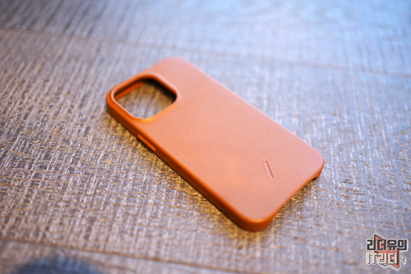 안쪽에는 극세사 안감으로 되어 있어 아이폰13 프로를 안전하게 보호하고 있습니다. 그리고 아이폰13 프로 맥세이프 케이스라 원형의 라인이 보이고 그 안에 네이티브 유니온이라고 새겨져 있습니다.