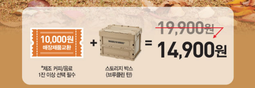 던킨 도너츠 캠핑 스토리지 박스(폴딩 박스)는 던킨 도너츠 1만원 제품 교환권과 함께 구입할 수 있습니다. 예약기간 구입시에는 5,000원을 할인해 14,900원에 구입이 가능합니다. 즉, 4,900원에 캠핑 폴딩 박스를 구입하는 것입니다. 괜찮죠?