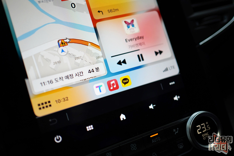 내비게이션 길찾기에 들어가면 경로 화면이 내비게이션 화면에 나오고 오른쪽 상단 화면은 사이즈가 더 커지면서 방향 경로 표시가 나옵니다. 고정된 화면이 아닌 유기적으로 화면 구성이 변경되는 걸 확인해 볼 수 있습니다.
