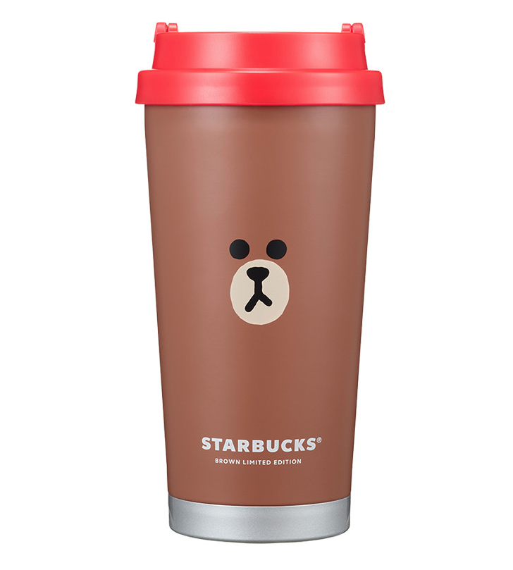 기다란 텀블러에 들어간 브라운 얼굴, 홀리데이 레드 컬러를 리드로 제공한 스페셜 에디션 입니다. 재질은 스테인리스 스틸이라 보냉, 보안 효과가 있고 용량은 473ml 라 가장 활용도가 좋은 굿즈입니다.