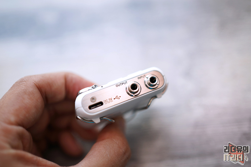 그리고 가운데 빨간색 원형의 버튼이 녹음 버튼입니다. 녹음중일때는 위에 빨간색 녹음 LED가 나와서 작동중 임을 알 수 있고 배터리 상태, INPUT 연결 상태를 LED로 보여줘 직관적인 사용을 할 수 있습니다.