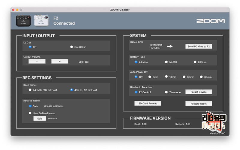 ZOOM F2-BT는 스마트폰으로 모니터링이 가능해서 확실히 편한 사용이 가능하니 이왕이면 블루투스 모델을 선택하시는 게 좋습니다.
