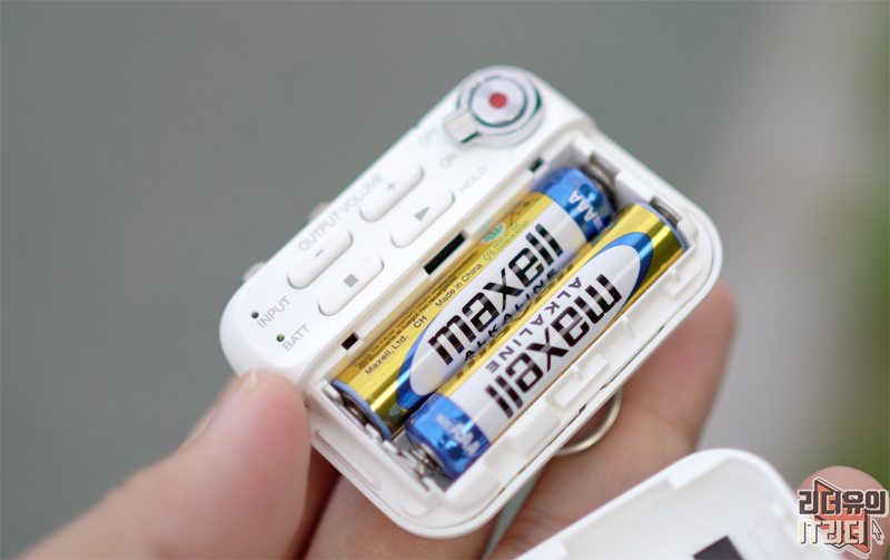 배터리는 AAA 건전지 2개가 사용되고 알카라인 배터리 기준으로 약 14시간 사용이 가능합니다.