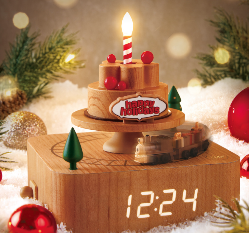 베스킨라빈스 클래식 오르골 시계는 케이크 디자인을 가진 굿즈로 초에 조명이 들어오고 아래는 전자시계, 위에는 기차가 도는 예쁜 디자인을 가지고 있습니다. 크리스마스 캐롤도 나온다고 하니 크리스마스 인테리어 소품으로 최적의 매력을 갖추고 있습니다.