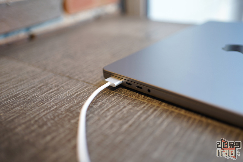 그리고 M1 PRO, M1 MAX 맥북프로 14의 경우 맥세이프3 단자 뿐만 아니라 USB-C 타입 썬더볼트4로 똑같은 충전 속도를 경험할 수 있어 어떤 방식으로 충전하든 상관 없습니다.