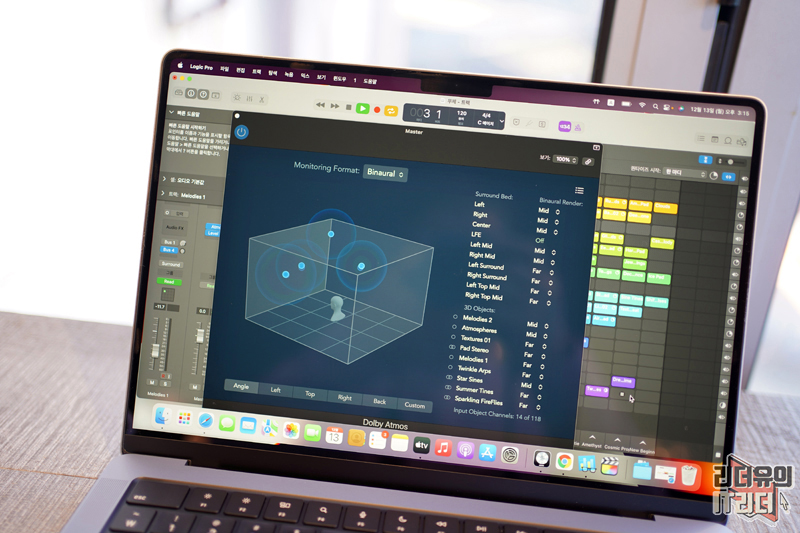참고로 로직프로 X를 통해 돌비 애트모스 공간음향을 작업할 수 있어 입체적인 사운드 작업 효과도 경험할 수 있습니다.