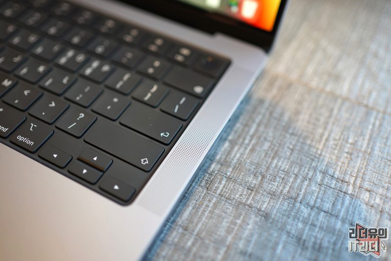 무엇보다 M1 PRO, M1 MAX 맥북프로14 스피커에서 주목해 볼 점은 기존에는 맥북프로 16과 스피커에서 차이가 있었는데요. 이번에는 맥북프로 14나 맥북프로 16이나 스피커 차이가 없습니다. 물론 보여지는 홀이 작아서 나오는 소리에서 약간 차이가 있을 수 있지만 기본적인 스피커 스펙이 똑같이 들어가 있어서 최고의 소리를 맥북프로 14에서도 들을 수 있습니다. 공간 음향 기술도 이 자체로 들을 수 있으니 감동 그 자체입니다.