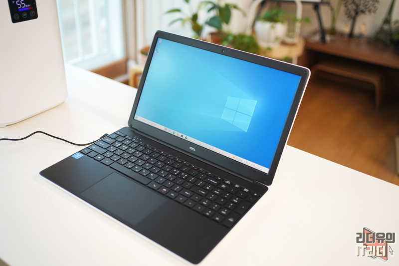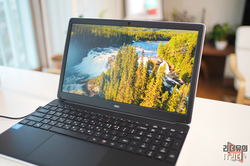 상단에는 30만 화소 전면 카메라가 있고 배젤 두께도 그리 두껍지 않습니다. 그리고 IPS 디스플레이라 색 표현력이 좋고 시야각도 좋습니다. 저렴한 노트북의 경우 측면에서 보면 색이 많이 변하는데요. 아이뮤즈 스톰북5는 상하좌우 모두 선명한 화면을 볼 수 있습니다.