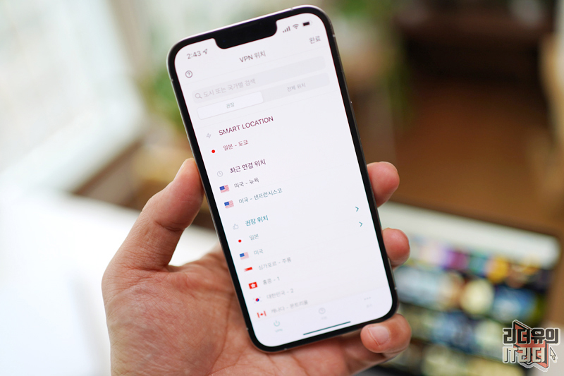 그리고 VPN 사용법도 간단합니다. 아래 지역을 선택하면 VPN 위치를 선택할 수 있습니다. 권장 VPN 위치, 전체, 최근으로 볼 수 있어 쉽게 선택이 가능합니다. 검색으로도 쉽게 찾을 수 있습니다.