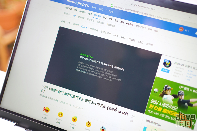 그래서 VPN 서비스를 이용하게 되면 공간의 제약 없이 다양한 활용을 할 수 있습니다. 참고로 서비스마다 접속하는 국가에 따라 보여지는 내용을 달리 하는 경우가 있습니다. 해외 나가서 네이버에 접속해 본 분들은 경험하셨을 텐데요. 예를 들어서 네이버에 올라온 스포츠 하이라이트 영상 같은 경우 해외에서는 재생이 안됩니다. 해당 국가에서는 볼 수 없다는 메시지를 보게 되는데요. 이럴때 VPN을 이용하면 아무 문제없이 서비스를 이용할 수 있습니다.