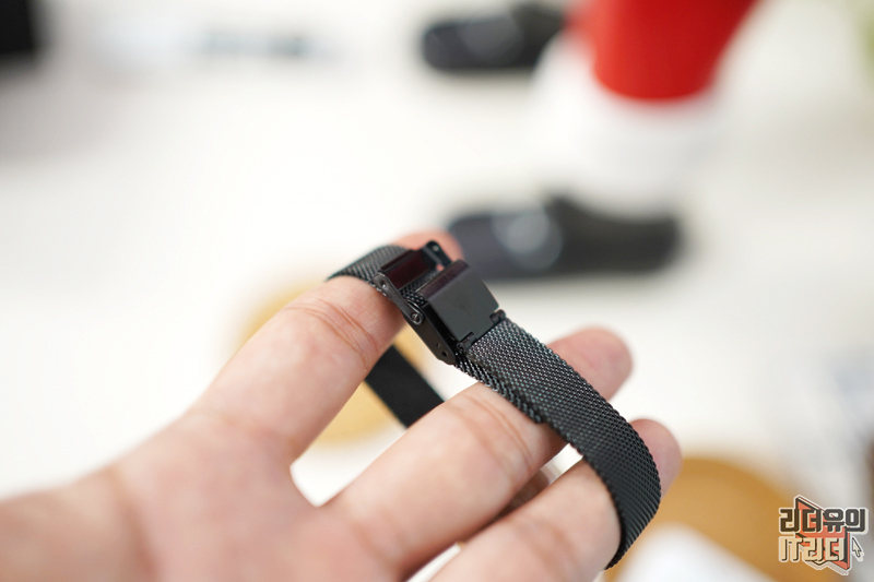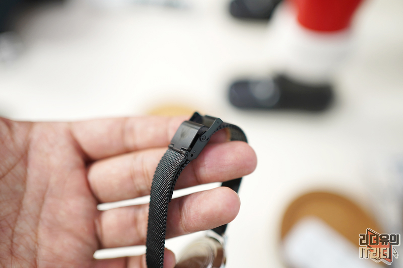 버클 같은 경우는 2중 락 구조로 되어 있습니다. 메탈 시계다 보니 버클 안정성이 떨어지면 시계가 쉽게 떨어져 나갈 수 있는데요. 안전하게 착용할 수 있게 2중 구조로 잡아주고 있고 쉽게 분리가 되지 않도록 완벽한 체결을 하고 있습니다.
