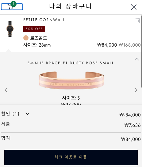 그럼 할인된 금액을 확인할 수 있는데요. 여기서 체크아웃로 를 선택하세요.