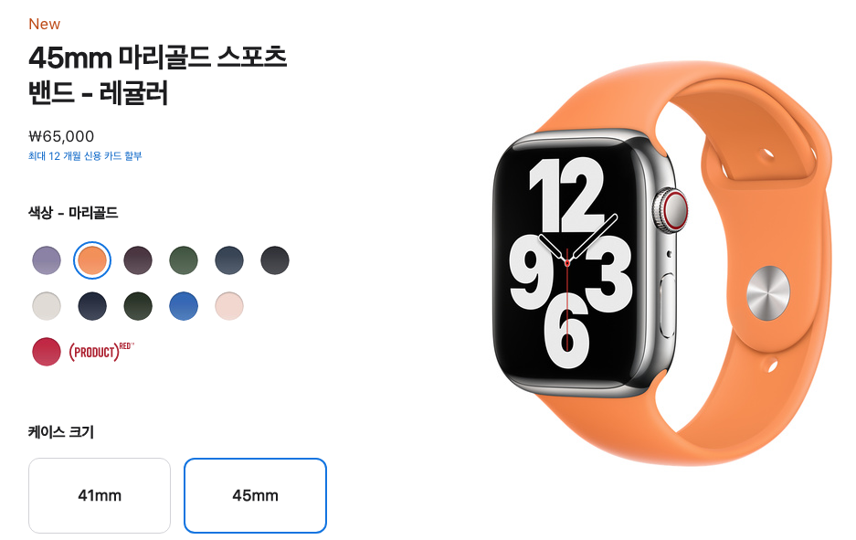 참고로 얼마전 애플워치 스포츠 밴드로 마리골드 색상이 추가되었는데요. 언뜻 유사한 계열의 색상이지만 다른 색상이라 보시면 됩니다.