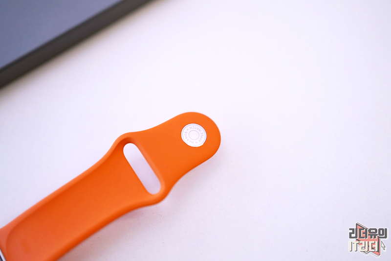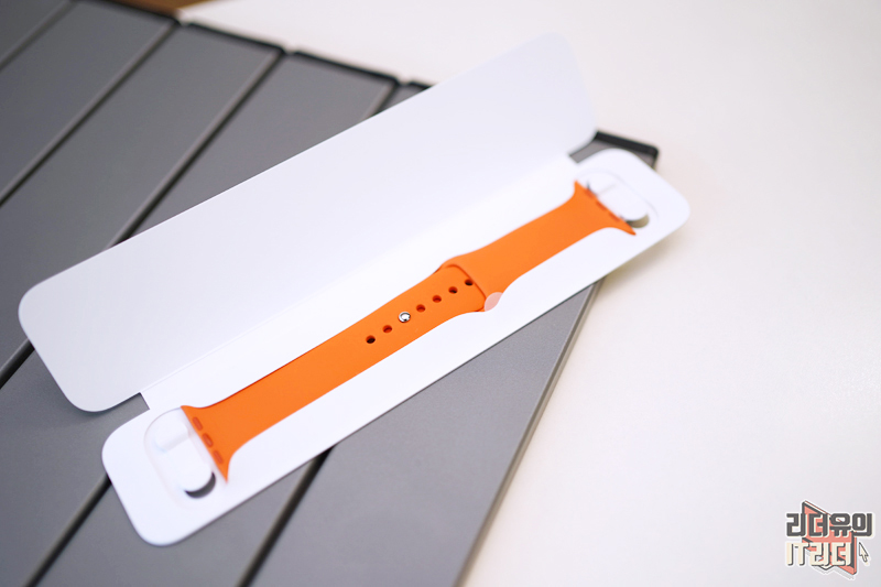 애플워치7 에르메스 에디션 패키지랑 같은 색상입니다. 에르메스의 상징적인 컬러를 스포츠밴드에 담고 있습니다.