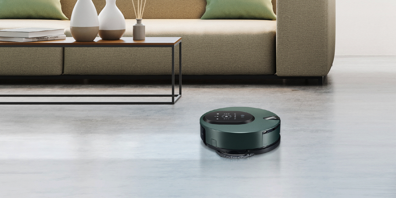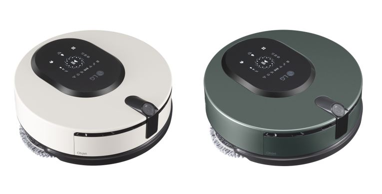 LG 코드제로 M9 오브제컬렉션은 공간 인테리어 가전으로 색상의 차별화를 주었습니다. 카밍 베이지, 카밍 그린으로 산뜻한 물걸레 로봇청소기 디자인을 보여주고 있습니다.