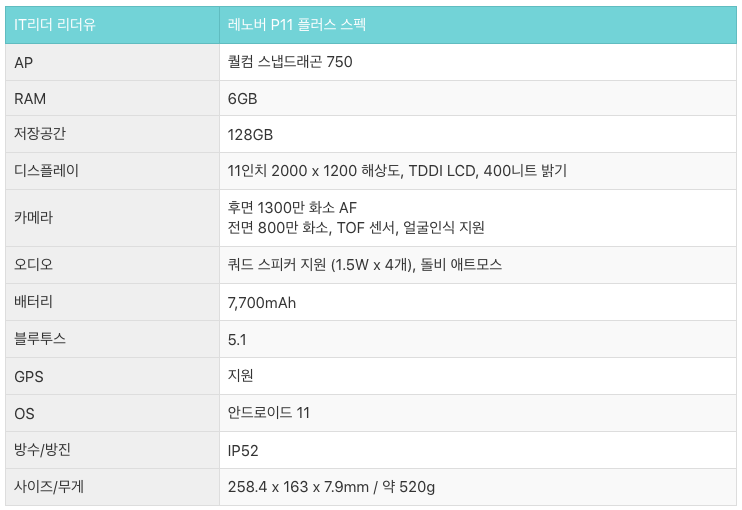 레노버 P11 플러스 스펙