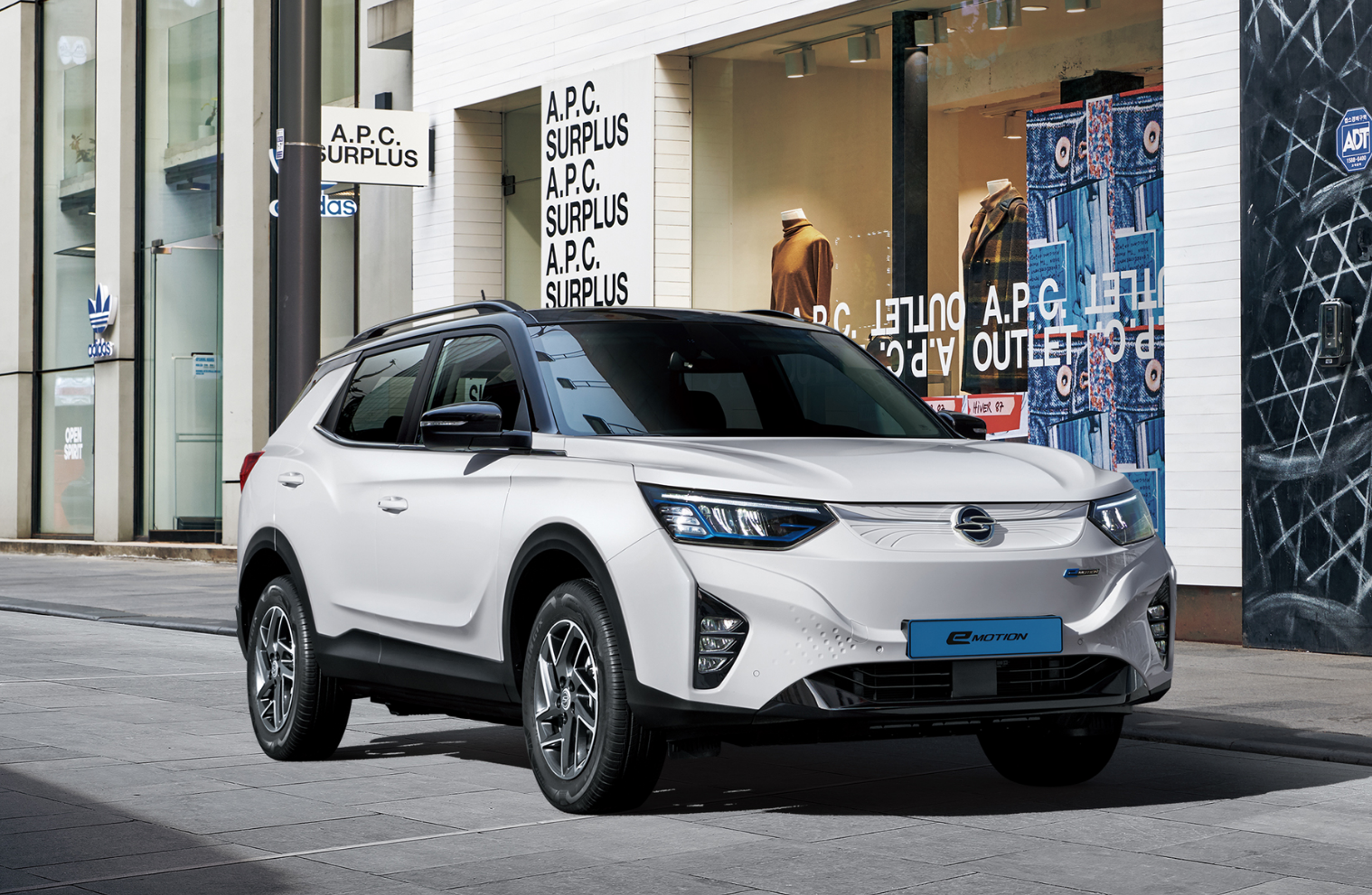 쌍용자동차 전기차 SUV 코란도 이모션은 코란도의 디자인을 전기차로 새롭게 재해석하고 있습니다. 전체적으로 내연기관차의 디자인을 그대로 유지하고 있고 전면 그릴은 없애면서 깔끔한 디자인을 느낄 수 있습니다.