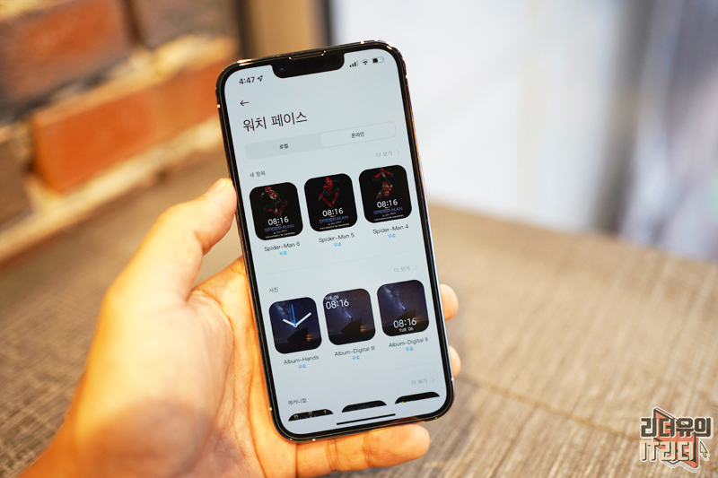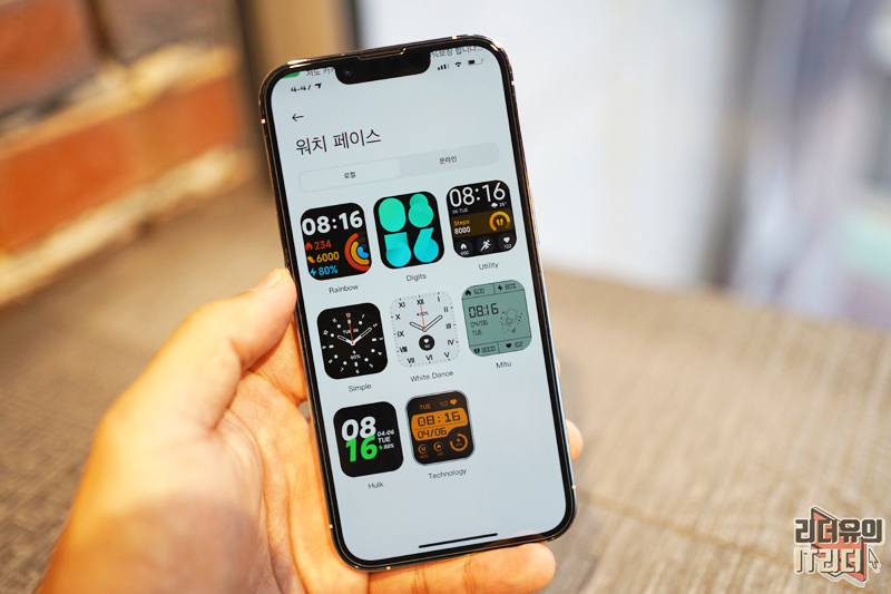 로컬은 기존에 적용했던 워치페이스들입니다. 시계에 저장된 워치페이스를 따로 모아서 보여주고 온라인으로 들어가면 여러가지 테마에 맞게 워치페이스를 볼 수 있습니다.